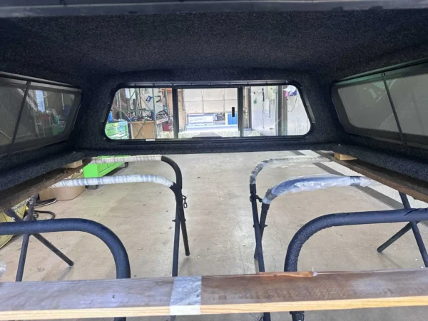 Carpeted Headliner, 12v LED Tube Light, Tipout Side Windows with Removable Screens, Front Slider Window